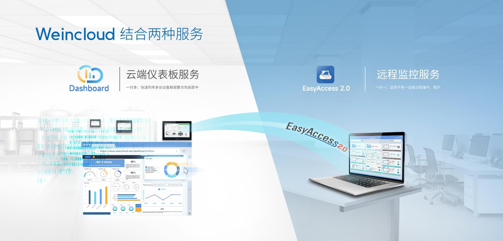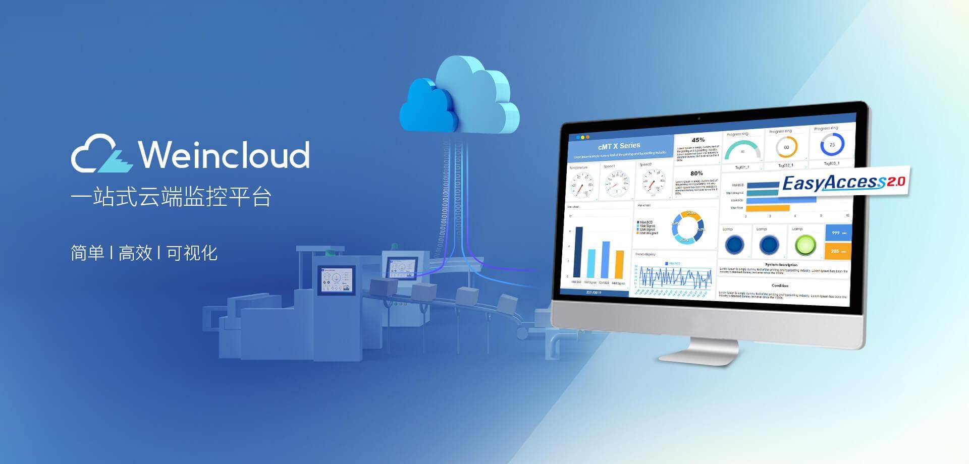 Weincloud 集結(jié)EasyAccess2.0遠(yuǎn)程監(jiān)控服務(wù)及Dashboard云端儀表服務(wù),將設(shè)備資料數(shù)據(jù)上云并以視覺化呈現(xiàn),協(xié)助管理者實時掌控現(xiàn)場產(chǎn)線狀態(tài)。